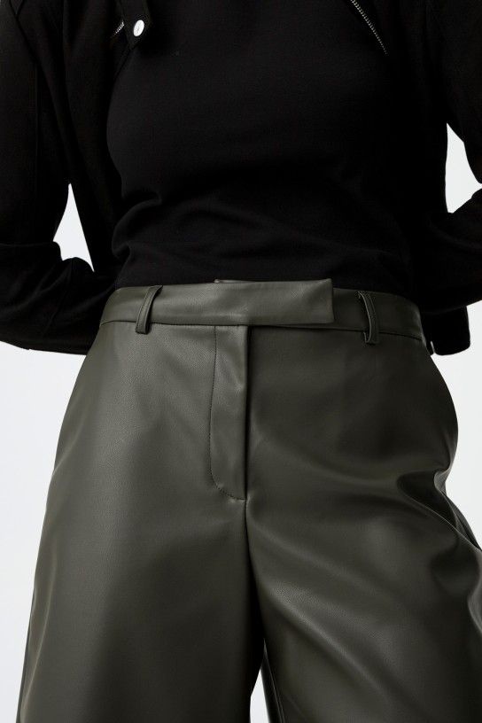 Bermuda regular fit efeito pele, com dois bolsos frontais. Cintura alta com fecho de correr e gancho interno.