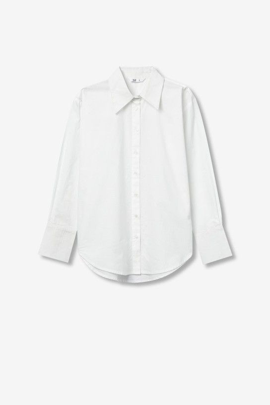 Camisa oversized de algodão, com gola colarinho, manga longa com botões nos pulsos e bainha curva.