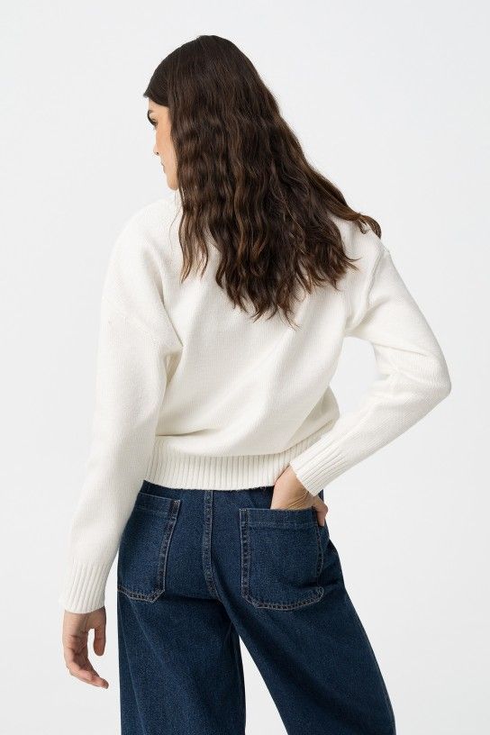 Camisola de manga comprida relaxed fit. Malha texturizada, com gola em V. Punhos e bainha em rib.