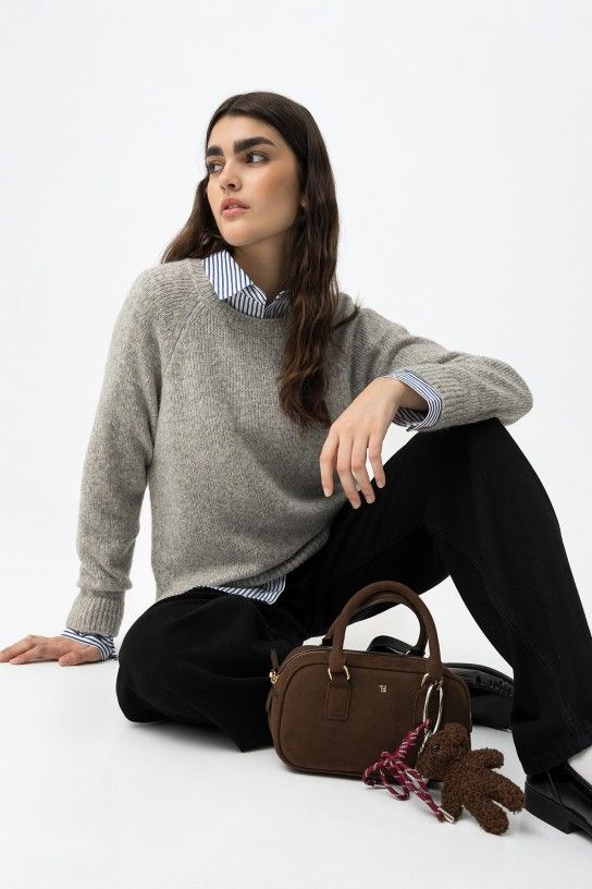 Camisola de malha com gola redonda e mangas em cava raglã. Punhos e bainha em rib.