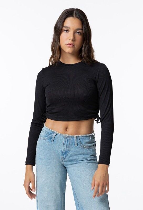 Camisola de manga comprida em malha canelada. Super slim fit e cropped. Gola alta. Punhos e bainha em rib