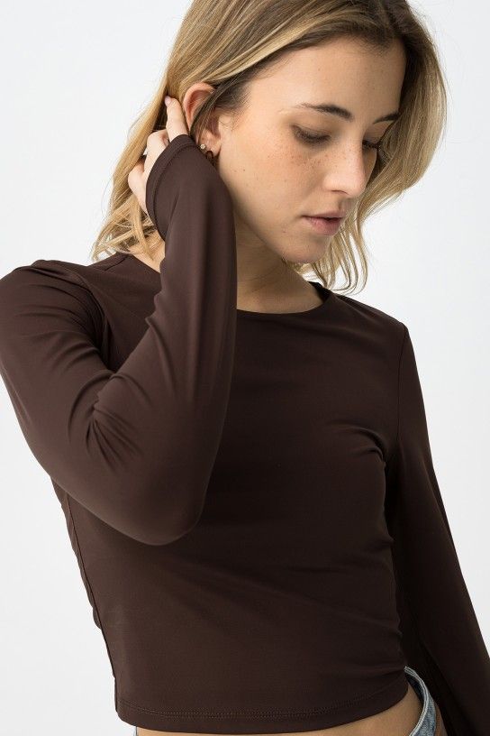 T-shirt super slim de manga comprida com corte justo e design minimalista.