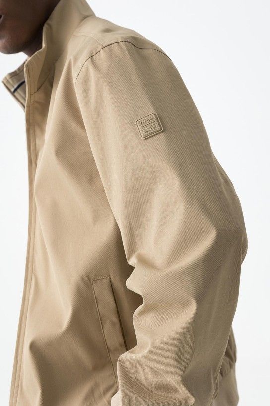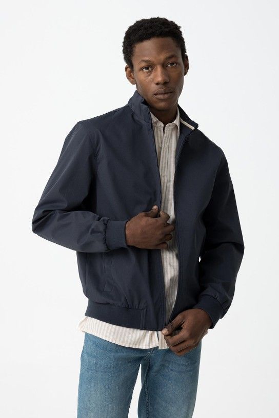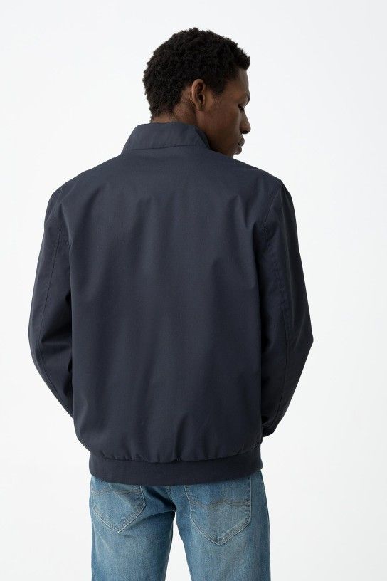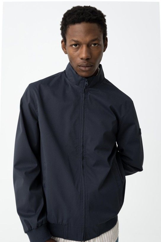 Casaco tipo bomber de manga comprida. Fecho frontal com fecho de correr. Bolsos laterais e bolso interior. Extremidades caneladas.
