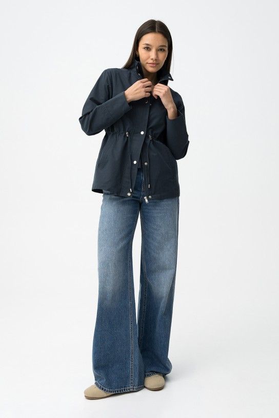 Casaco de corte regular com botões dourados e ajuste na cintura. Elegante e versátil.