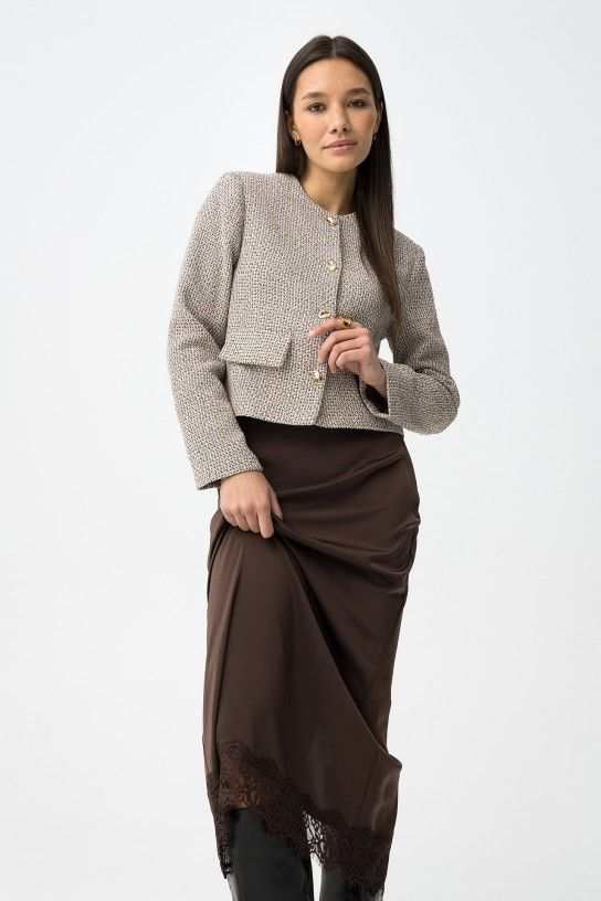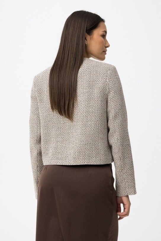 Casaco regular com botões dourados e textura suave, ideal para um look casual chic.