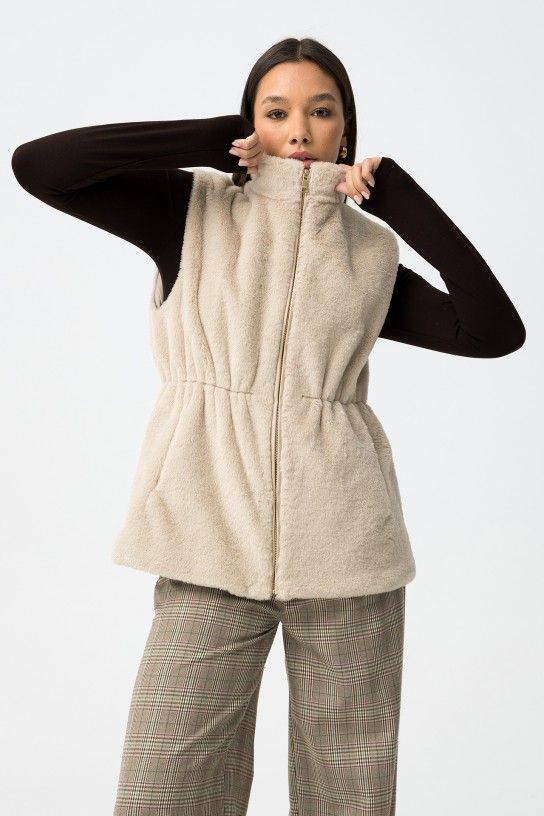 Colete com corte relaxed, fecho frontal e bolsos laterais. Ideal para looks descontraídos.