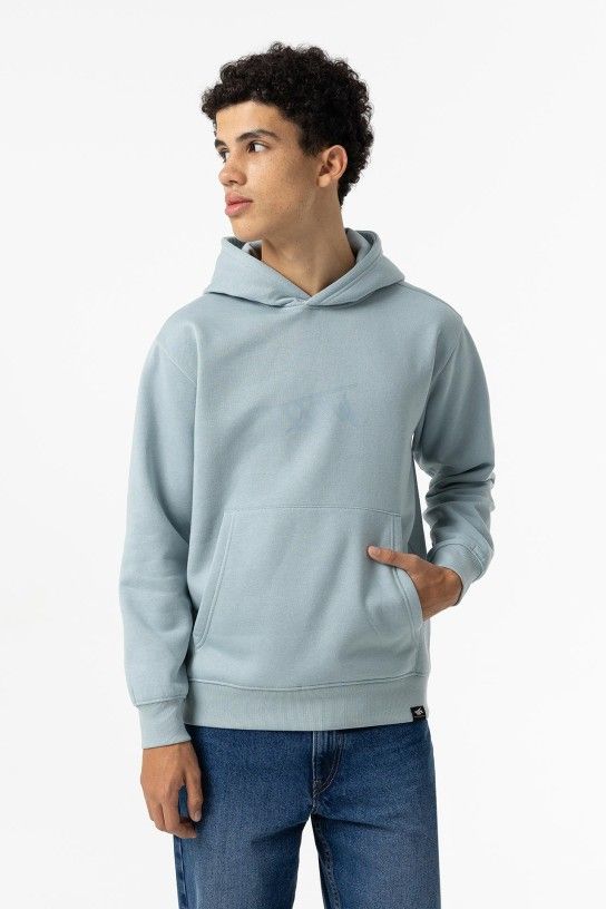 Sweatshirt slim fit cardada com capuz ajustável e manga comprida. Estampado à frente. Extremidades caneladas.