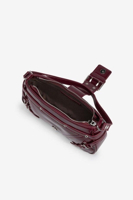 Mala de mão efeito pele envernizada, com aplicações metálicas e pala com fecho magnético. Fecho de correr superior e alça fixa. Estação: BASICO Categoria: Acessórios Marca: Tiffosi