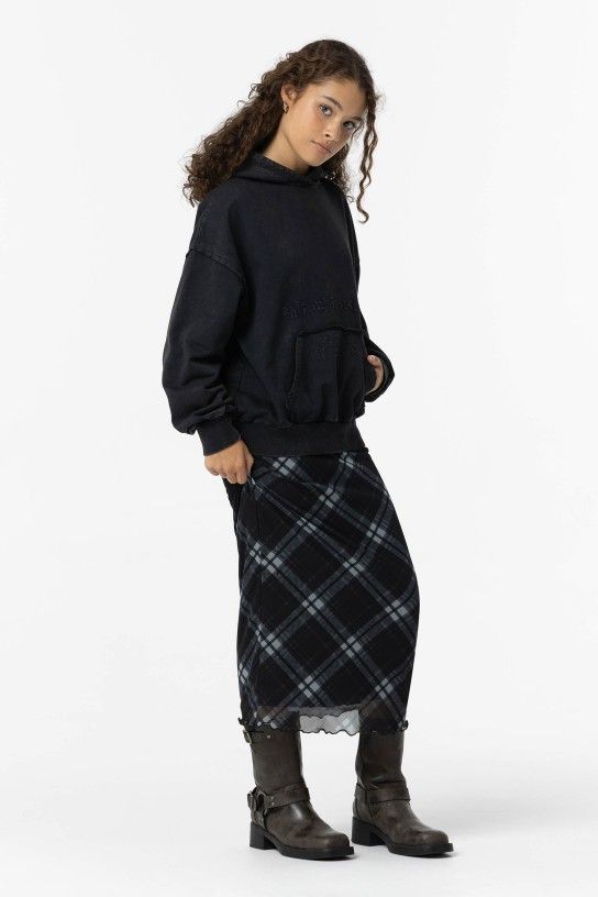 Saia midi de cintura média com cós elástico. Pormenor de laço à frente. Forro interior. Estação: OUTONO INVERNO 2024 Categoria: Rapariga Junior Marca: Tiffosi