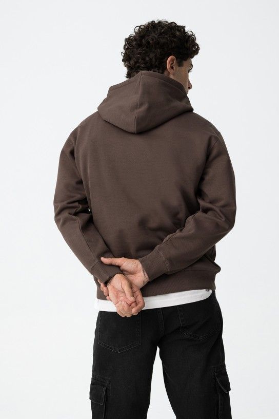 Sweat relaxed fit com capuz. Bolso canguru. Punhos e bainha em rib. Estampado frontal.