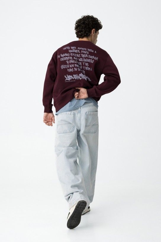 Sweat relaxed fit com estampado ?TYCW? em alto-relevo e estampa gráfica nas costas. Decote redondo, manga comprida e acabamentos em rib. Interior cardado.
