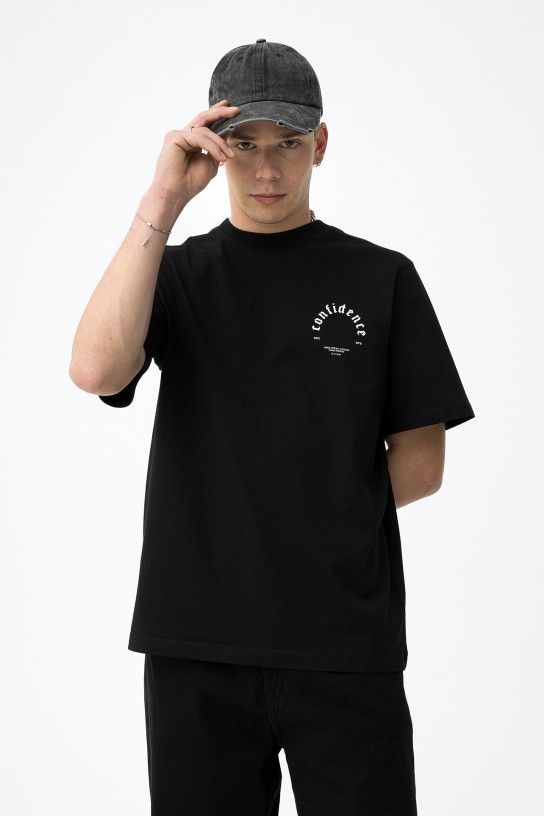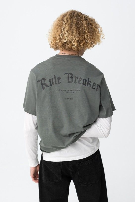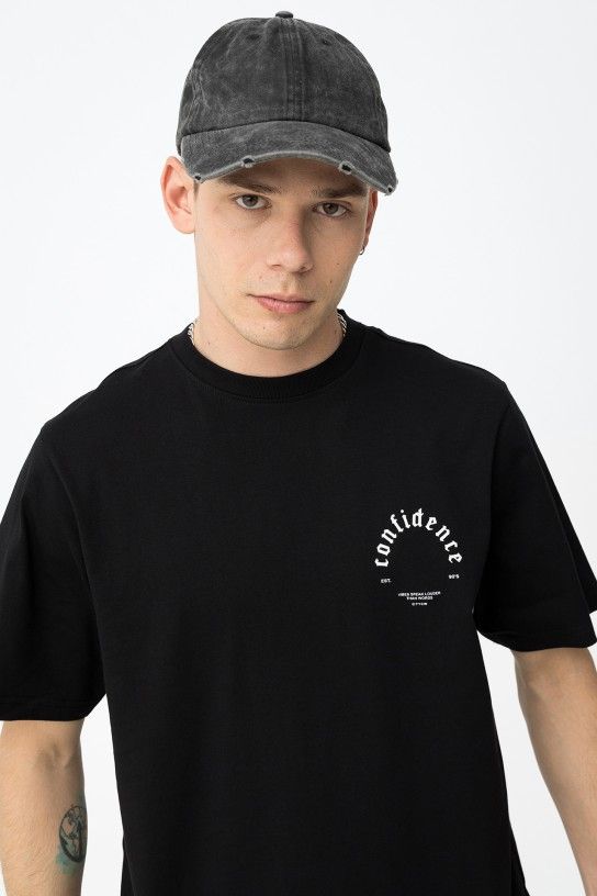 T-shirt com corte regular, manga curta e estampado frontal com vibe casual.