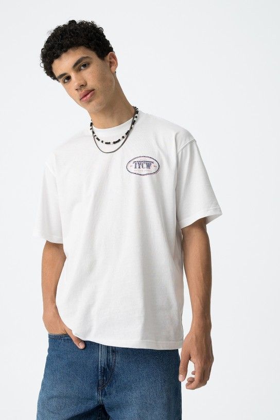 T-shirt de gola redonda e manga curta. Estampado all over.